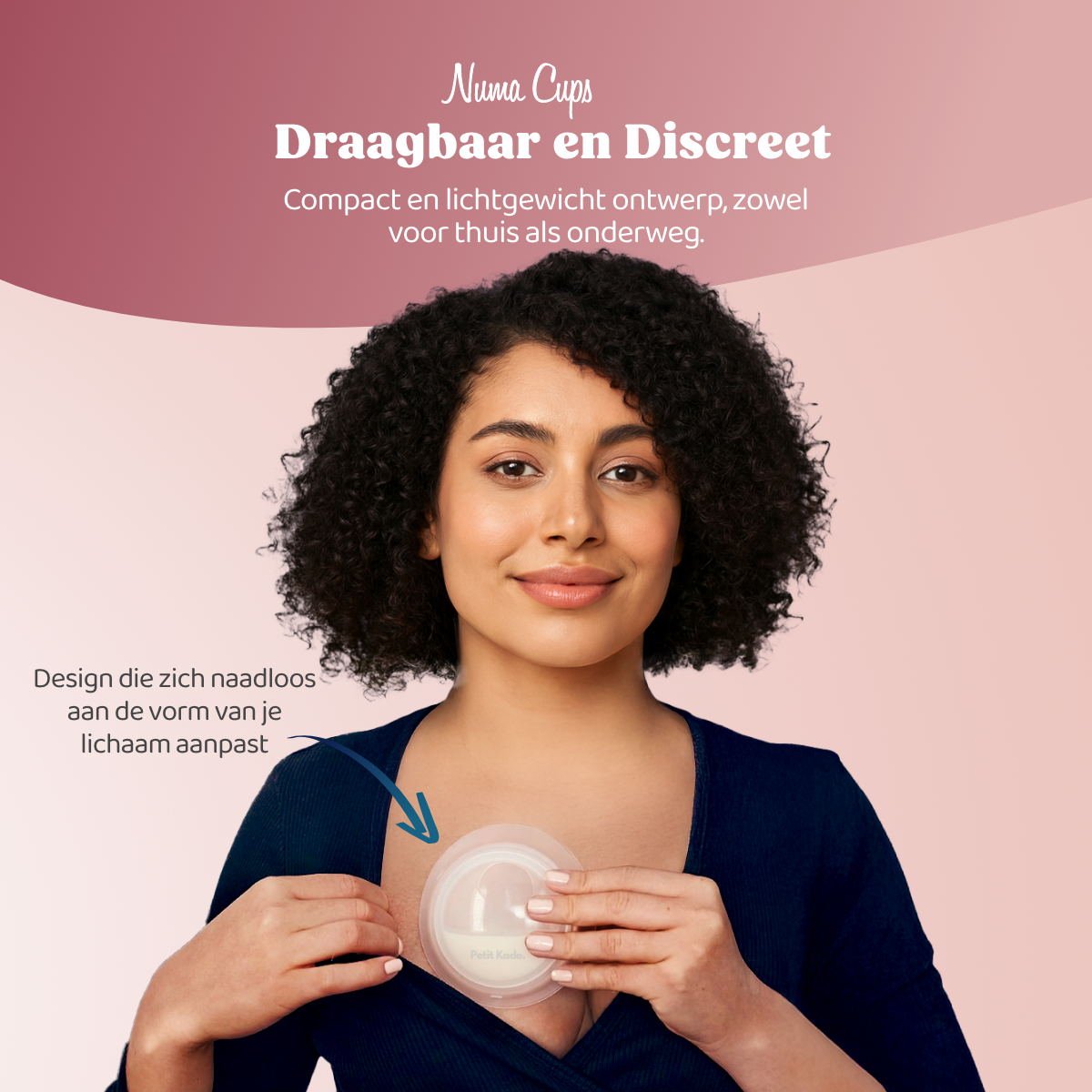Elke druppel telt. Tijdens het voeden of kolven verliest je lichaam ongemerkt kostbare melk. De Numa Cups zijn dé slimme oplossing voor moeders die niets willen verspillen. Deze zachte, onzichtbare lekschalen passen moeiteloos in je beha en vangen stilletjes de melk op die anders verloren zou gaan. Zo win jij comfort, controle én melk terug.