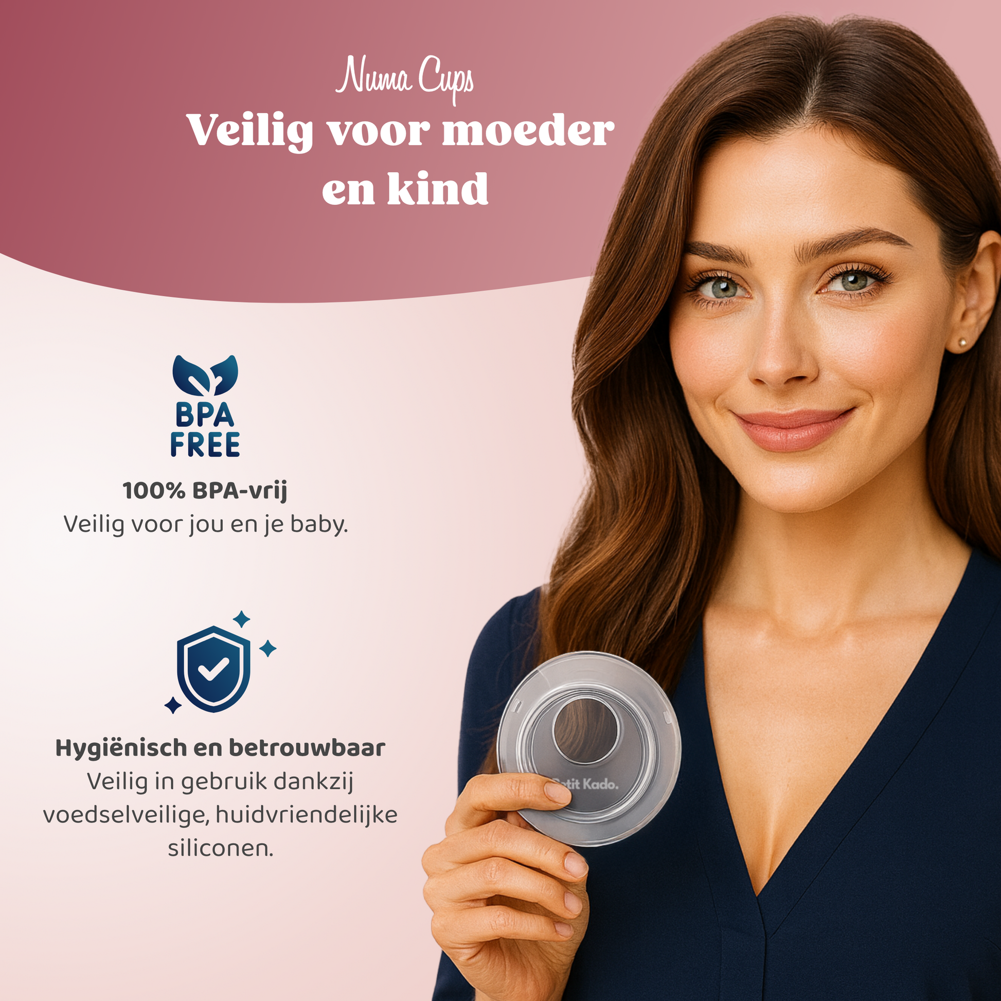 De Numa Cups zijn vervaardigd uit voedselveilig siliconen en BPA-vrij PP, wat zorgt voor maximale veiligheid voor jou én je baby. Het materiaal is bestand tegen hitte, vervormt niet en is superzacht voor de gevoelige huid. Perfect voor dagelijks gebruik.